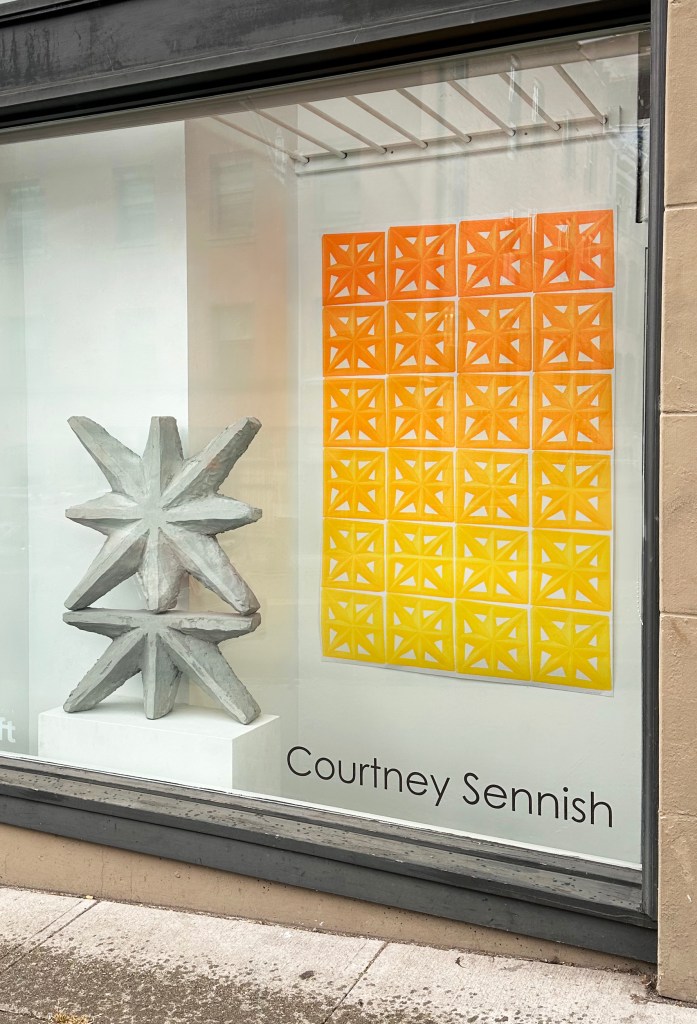 Courtney Sennish ambles through the city in search of illuminations: silent monuments presenting symbolic form and human decision. She looks at architectural repetition, color and texture to explore and dissect the urban fabric.