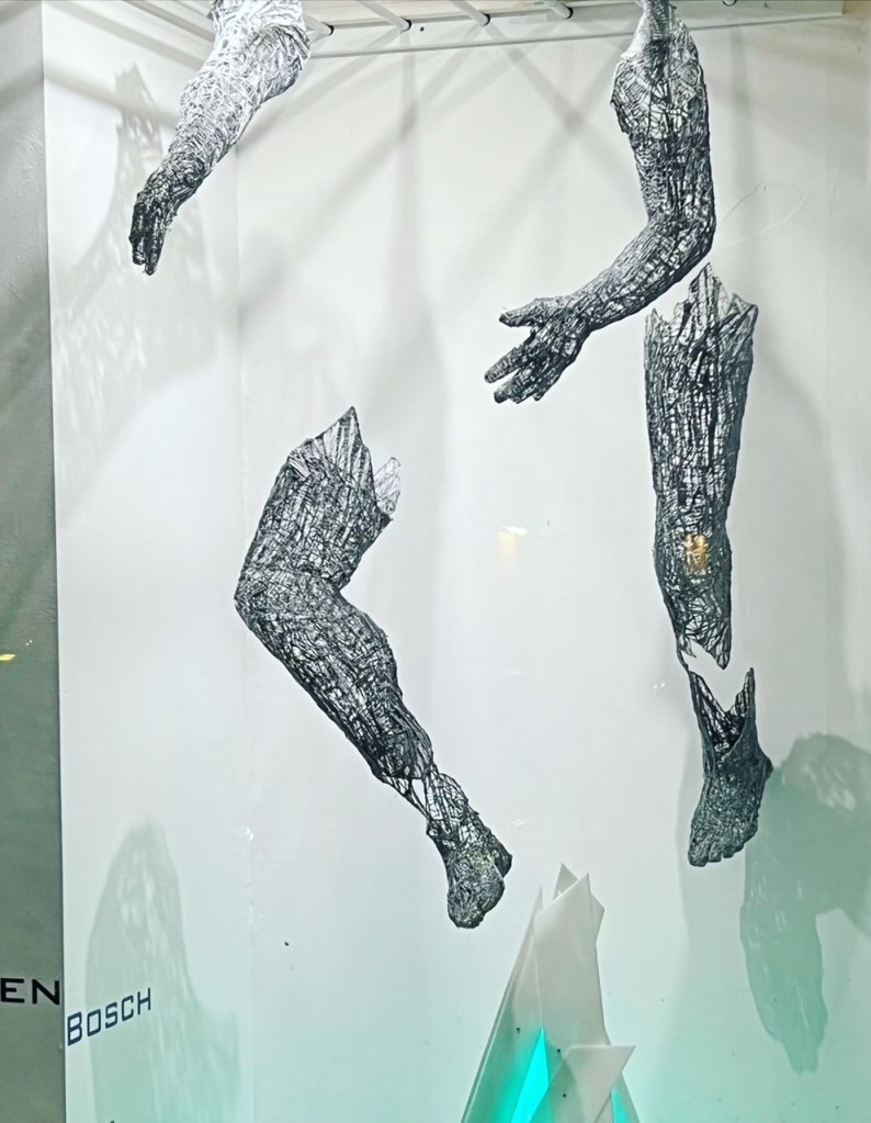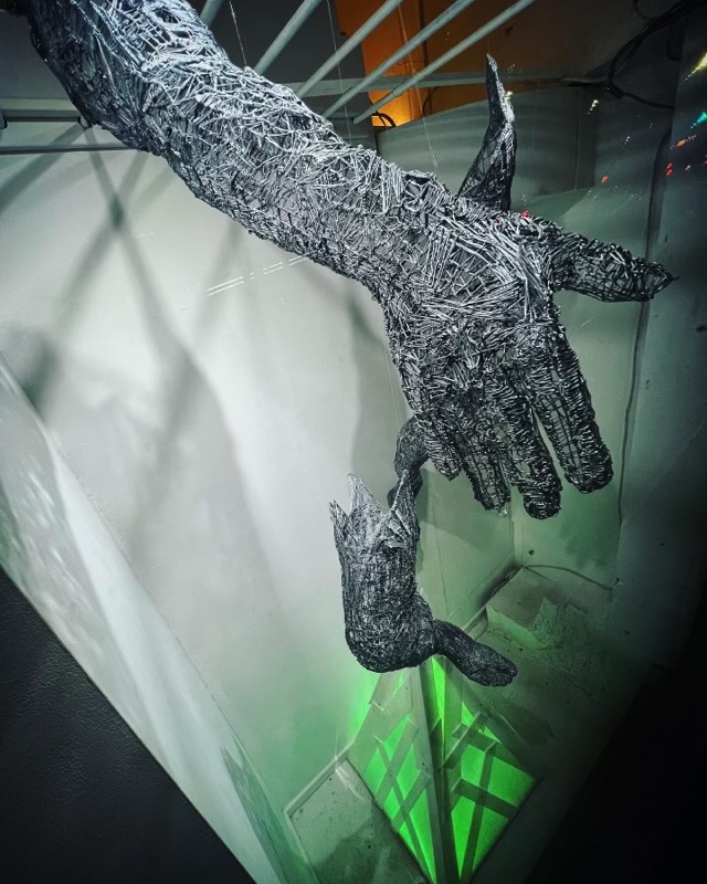 Using PLA filament extruded using a 3D pen and his own body for the mold, van den Bosch asks questions about the intersectionality of biology and technology confronting the reality of person machine integration and the prospect of the singularity within this current generation’s lifetime.