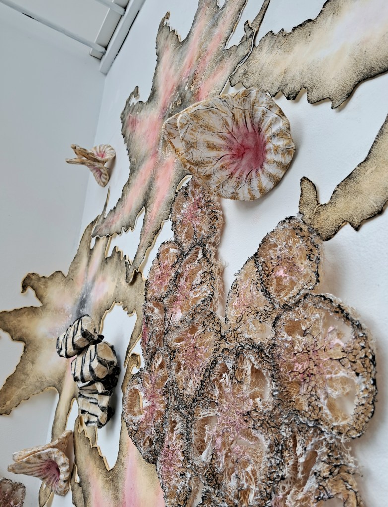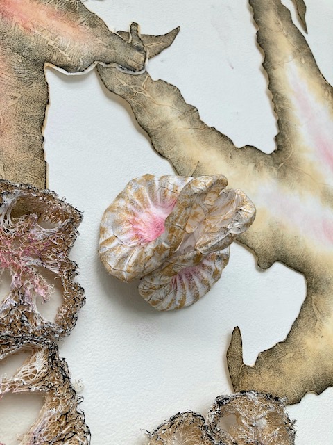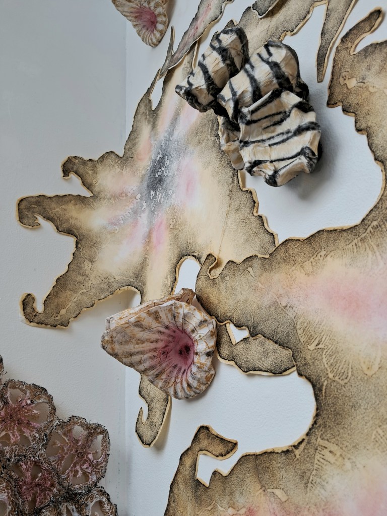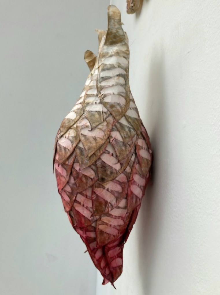 Primogenial Garden is an installation that was inspired by the aesthetic qualities of the first biological organisms, using natural fibers and washi paper as evocative elements that remind us of their fragility and resiliency.