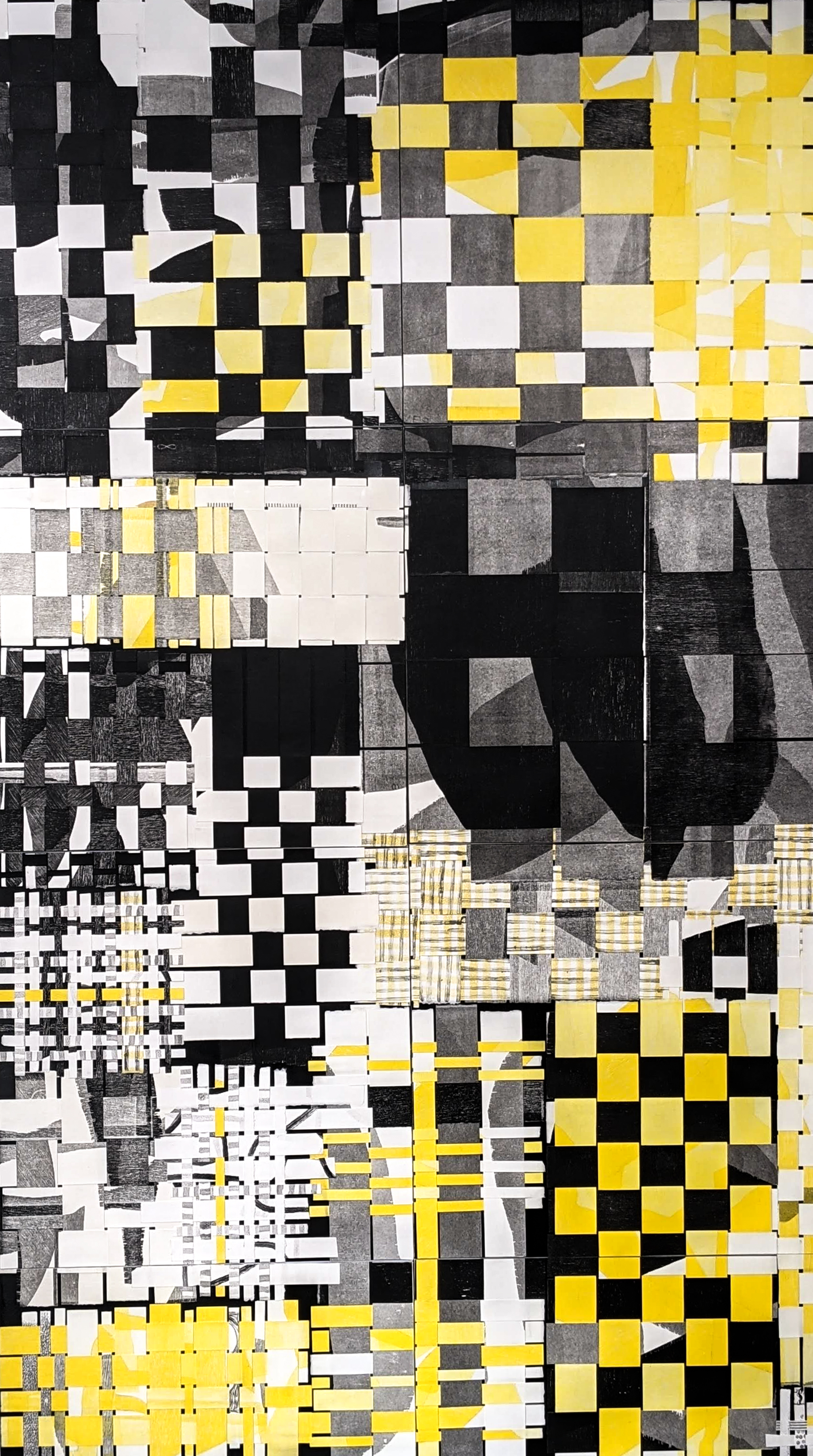 This work has evolved to include weaving and patchwork. I often pare back the color and regulate the composition in order to prioritize the underlying geometries. I privilege seams, methods of construction, binding and attachment, and at times showcase what would traditionally be the back as the front. My work presents a subtle, but compelling, visual conundrum: these pieces are highly regular and totally irregular all at once. It is this tension that brings to light a certain tenderness in the imperfect texture of our ordinary experience.